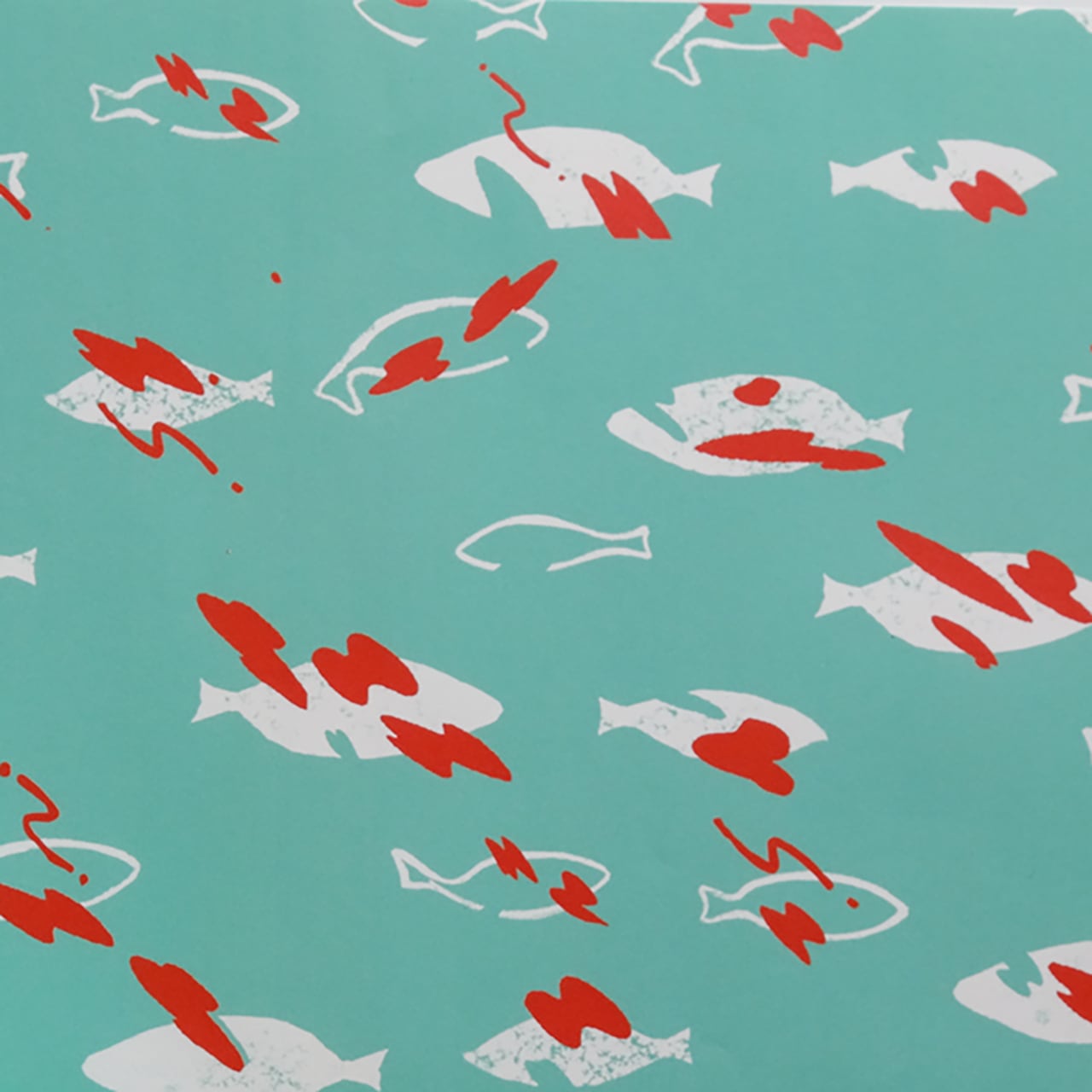 魚にあかいインクを垂らすことで鮮やかな錦鯉に。